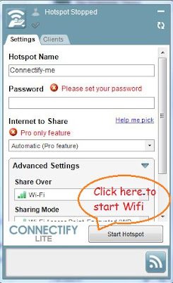 - To use your laptop or pc as WiFi , click on start Hotspot button
